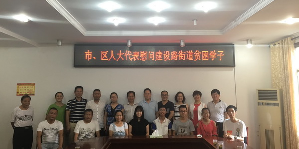 2016年8月16日,我司董事長(zhǎng)卜健萍女士作為岳塘區(qū)選出的湘潭市人大代表與其他湘潭市、區(qū)人大代表一起,深入建設(shè)路口街道開展“金秋助學(xué)?牽手圓夢(mèng)”行動(dòng),將助學(xué)金直接發(fā)放到貧困學(xué)生手中,為莘莘學(xué)子圓夢(mèng),為街道品學(xué)兼優(yōu)的學(xué)子送去了愛心和溫暖。
